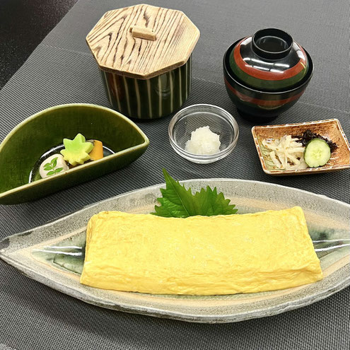 出汁巻き・小鉢・ご飯・香の物・赤出汁